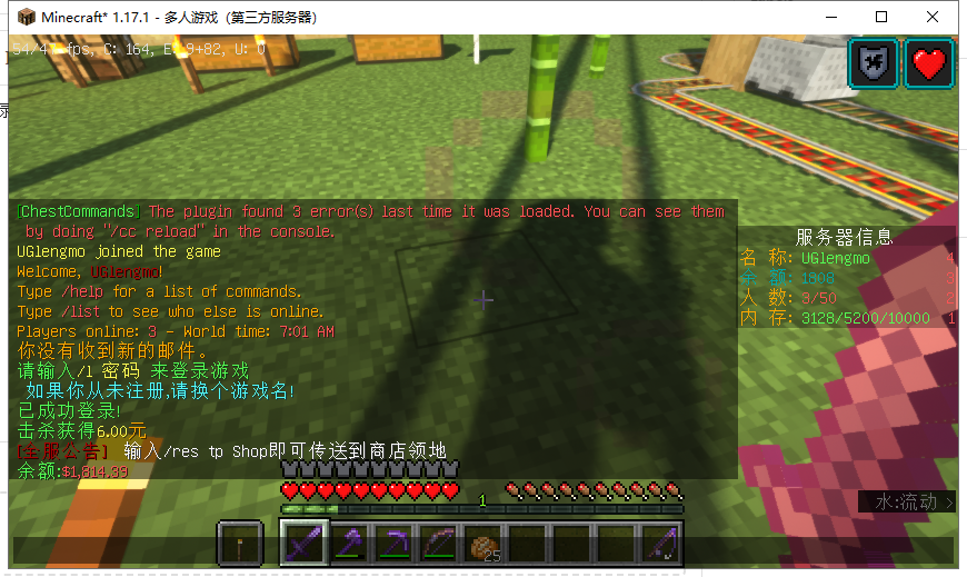 金钱变量只在登录的时候刷新一次。平时打怪掉的钱不会更新